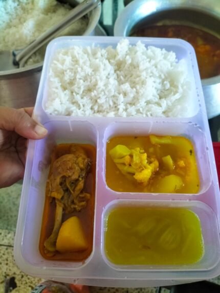 ভাত +সবজি +ডাল +এক পিস মাংস