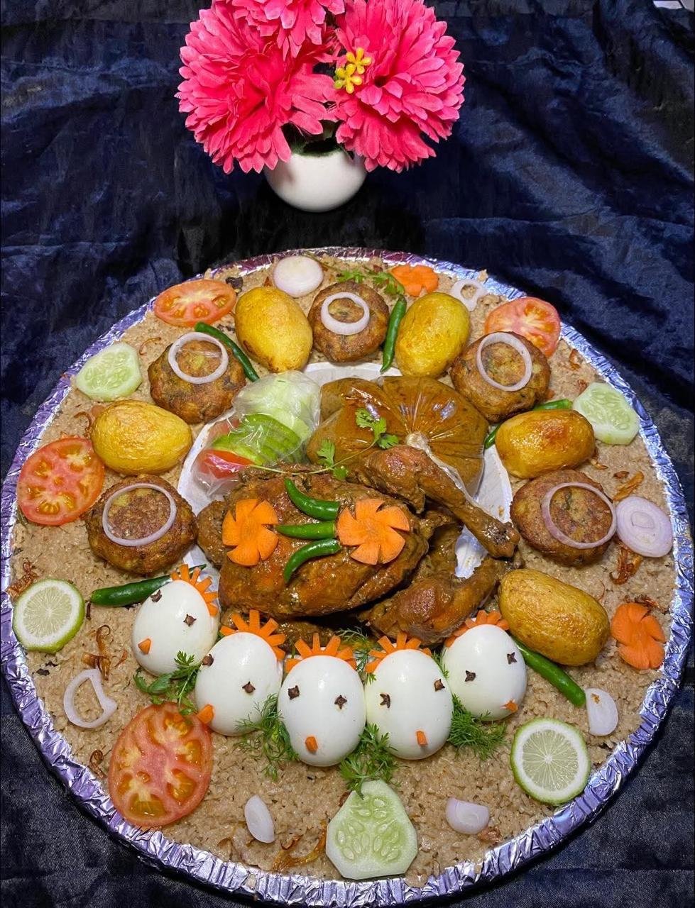 (4-5 egg,fried potato,kabab,full chicken grill,polao & salad)